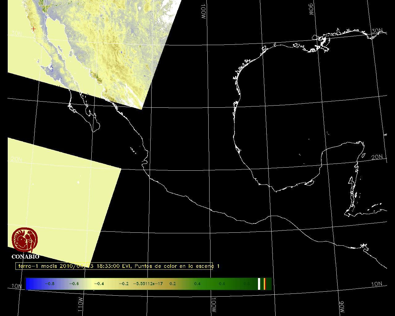 Se considera como punto de calor al elemento espacial mínimo de la imagen (pixel) que reporta una temperatura elevada. Para las imágenes diurnas la temperatura mínima considera es de 42 C y para las imágenes nocturnas es de 25 C. |