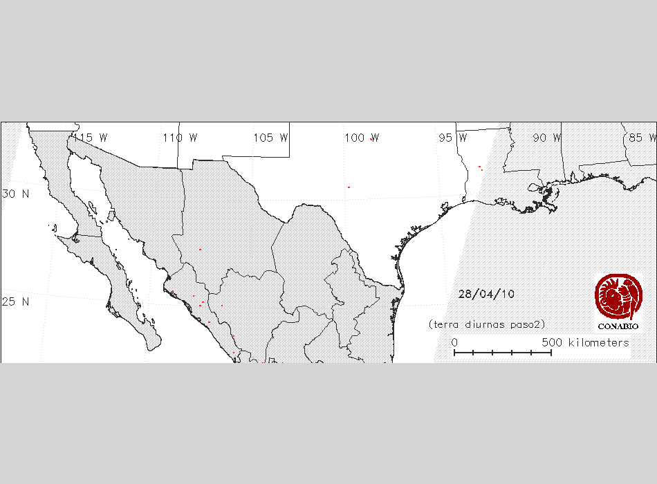 Se considera como punto de calor al elemento espacial mínimo de la imagen (pixel) que reporta una temperatura elevada. Para las imágenes diurnas la temperatura mínima considera es de 42 C y para las imágenes nocturnas es de 25 C. |