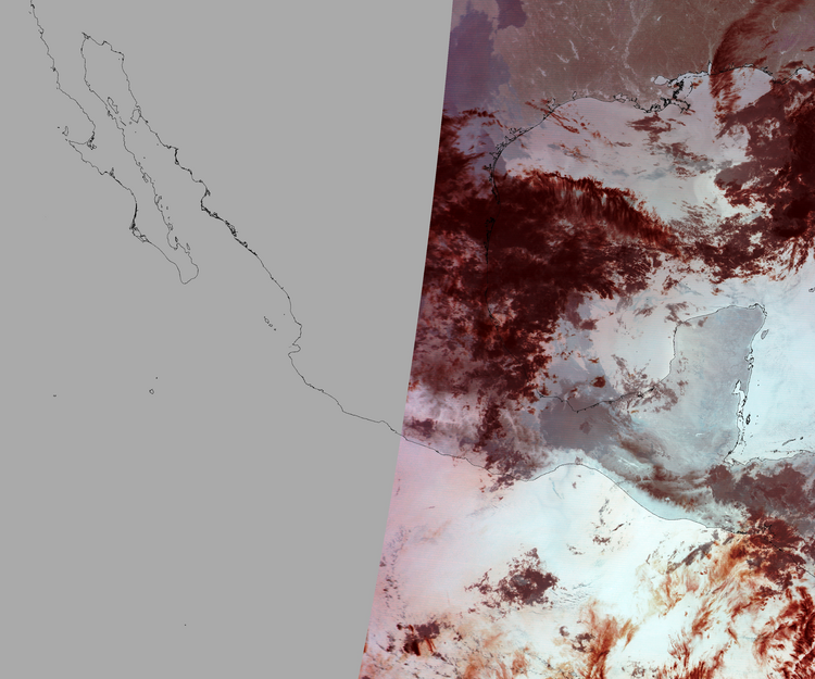 Nubosidad en el terreno:9% Nubosidad sobre México:16% Datos nulos en la escena:50% Datos nulos sobre México:63% |