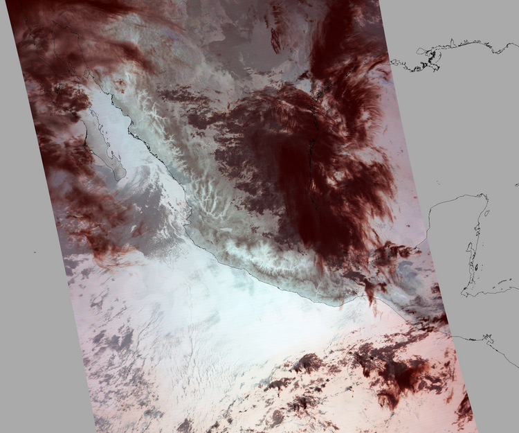 Nubosidad en el terreno:31% Nubosidad sobre México:29% Datos nulos en la escena:28% Datos nulos sobre México:6% |
