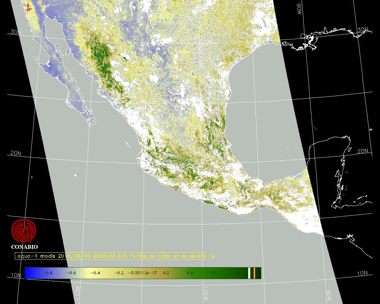 Se considera como punto de calor al elemento espacial mínimo de la imagen (pixel) que reporta una temperatura elevada. Para las imágenes diurnas la temperatura mínima considera es de 42 C y para las imágenes nocturnas es de 25 C. |