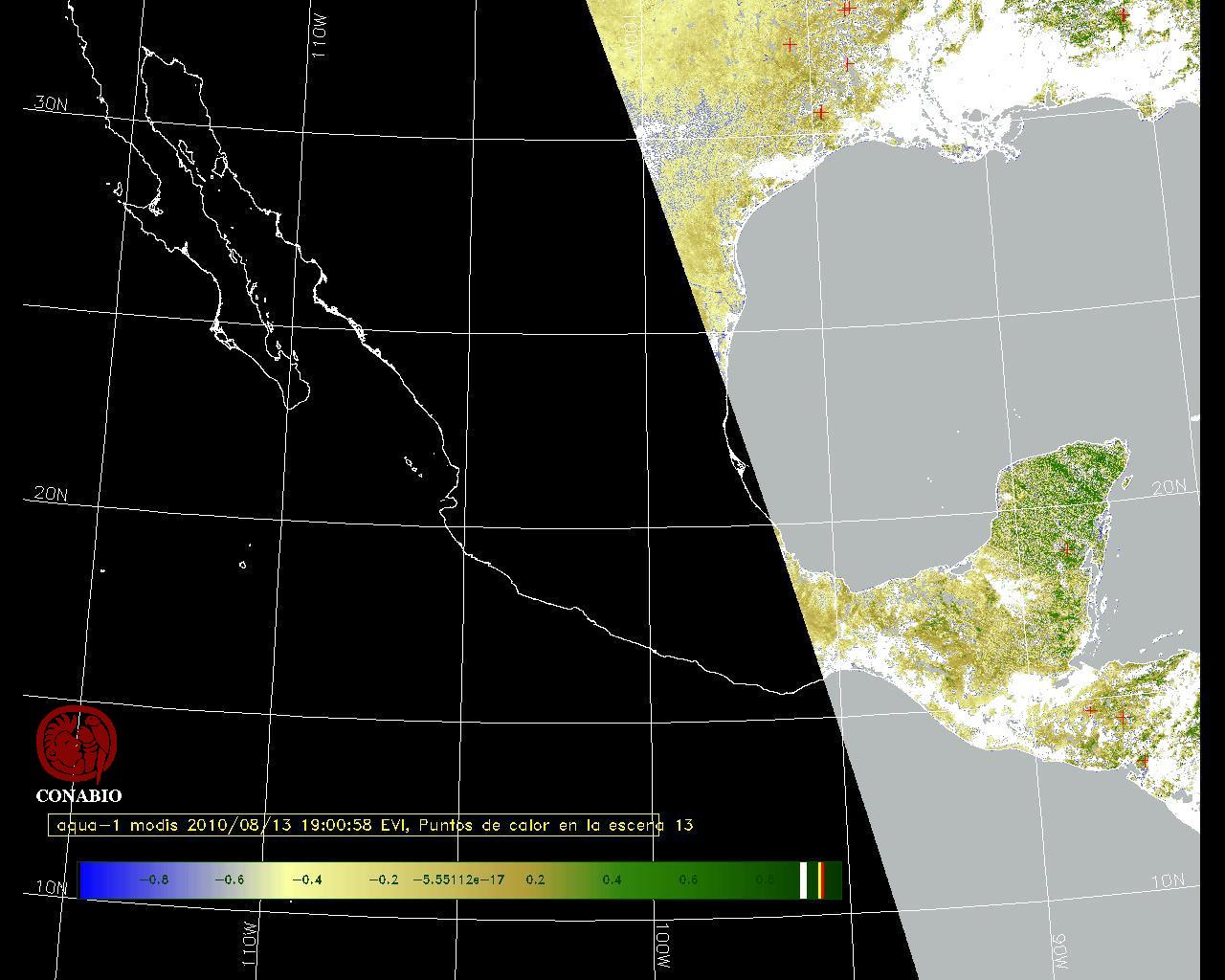 Se considera como punto de calor al elemento espacial mínimo de la imagen (pixel) que reporta una temperatura elevada. Para las imágenes diurnas la temperatura mínima considera es de 42 C y para las imágenes nocturnas es de 25 C. |