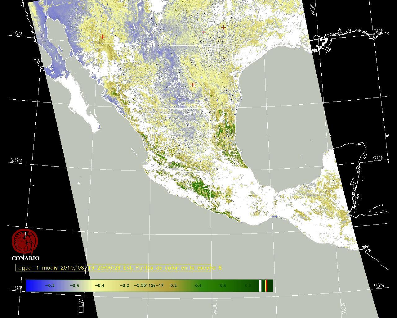 Se considera como punto de calor al elemento espacial mínimo de la imagen (pixel) que reporta una temperatura elevada. Para las imágenes diurnas la temperatura mínima considera es de 42 C y para las imágenes nocturnas es de 25 C. |