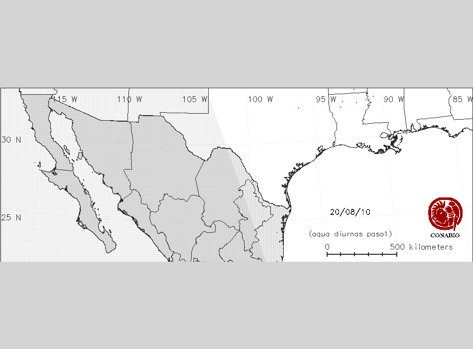 Se considera como punto de calor al elemento espacial mínimo de la imagen (pixel) que reporta una temperatura elevada. Para las imágenes diurnas la temperatura mínima considera es de 42 C y para las imágenes nocturnas es de 25 C. |