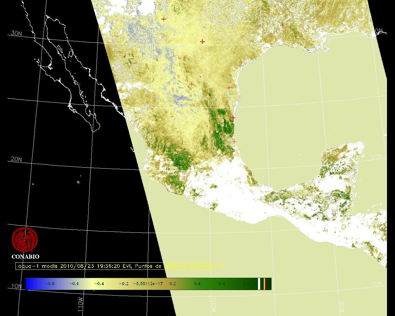 Los valores del índice van de -1 a 1, entre más cercano al valor 1 la vegetación presenta mayor vigor. Los índices de vegetación son utilizados para conocer el comportamiento de la vegetación tanto espacial como temporal. |