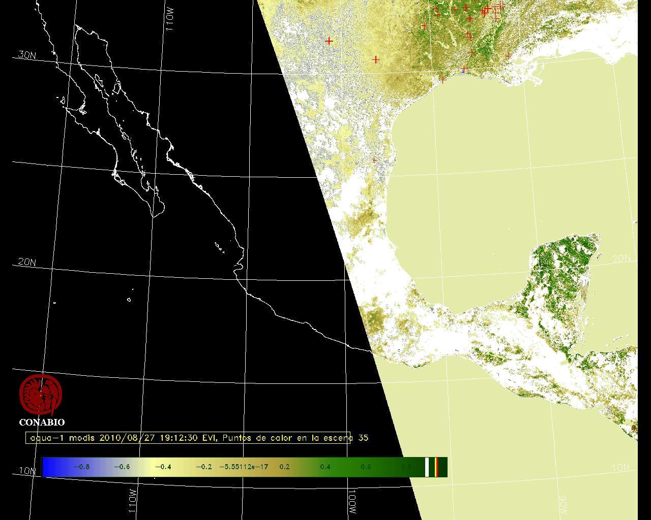 Se considera como punto de calor al elemento espacial mínimo de la imagen (pixel) que reporta una temperatura elevada. Para las imágenes diurnas la temperatura mínima considera es de 42 C y para las imágenes nocturnas es de 25 C. |