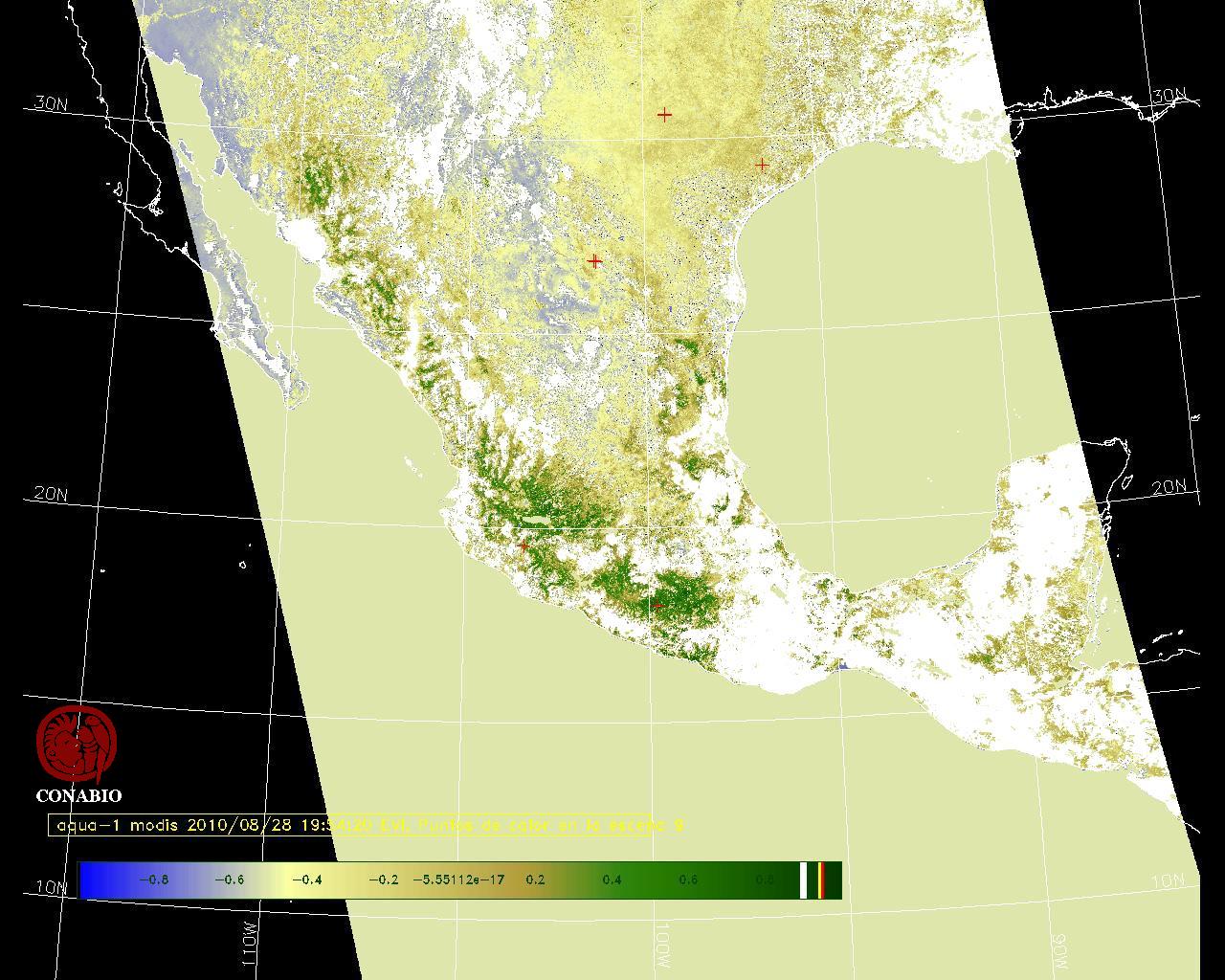 Los valores del índice van de -1 a 1, entre más cercano al valor 1 la vegetación presenta mayor vigor. Los índices de vegetación son utilizados para conocer el comportamiento de la vegetación tanto espacial como temporal. |
