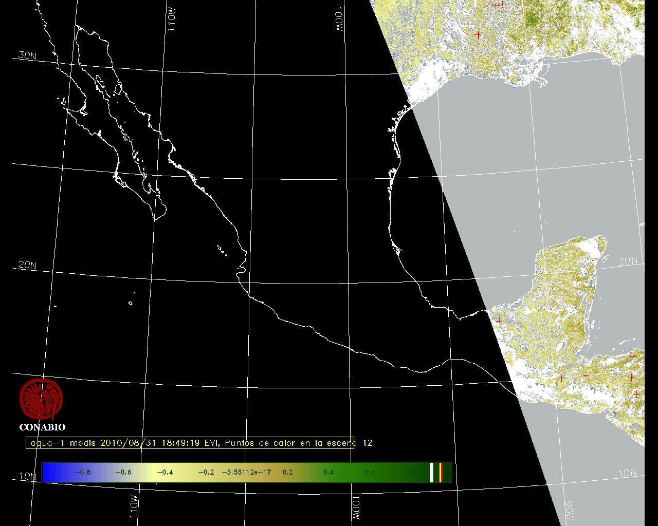 Se considera como punto de calor al elemento espacial mínimo de la imagen (pixel) que reporta una temperatura elevada. Para las imágenes diurnas la temperatura mínima considera es de 42 C y para las imágenes nocturnas es de 25 C. |