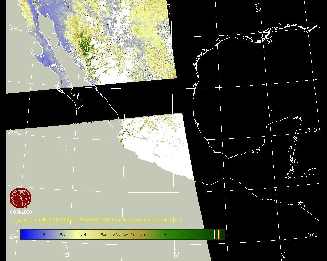 Se considera como punto de calor al elemento espacial mínimo de la imagen (pixel) que reporta una temperatura elevada. Para las imágenes diurnas la temperatura mínima considera es de 42 C y para las imágenes nocturnas es de 25 C. |