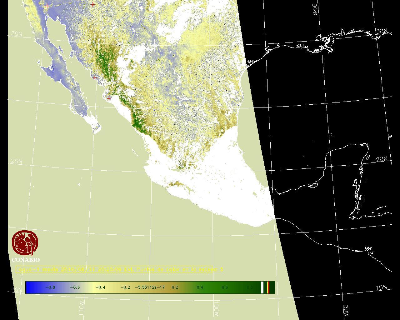 Se considera como punto de calor al elemento espacial mínimo de la imagen (pixel) que reporta una temperatura elevada. Para las imágenes diurnas la temperatura mínima considera es de 42 C y para las imágenes nocturnas es de 25 C. |