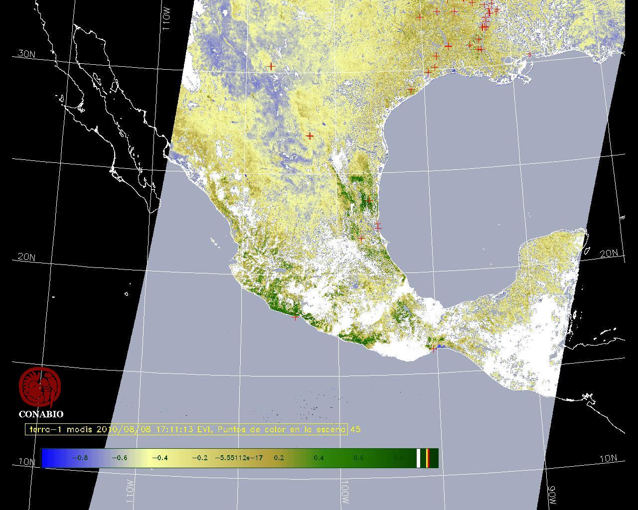 Nubosidad en el terreno:17% Nubosidad sobre México:20% Datos nulos en la escena:28% Datos nulos sobre México:16% |