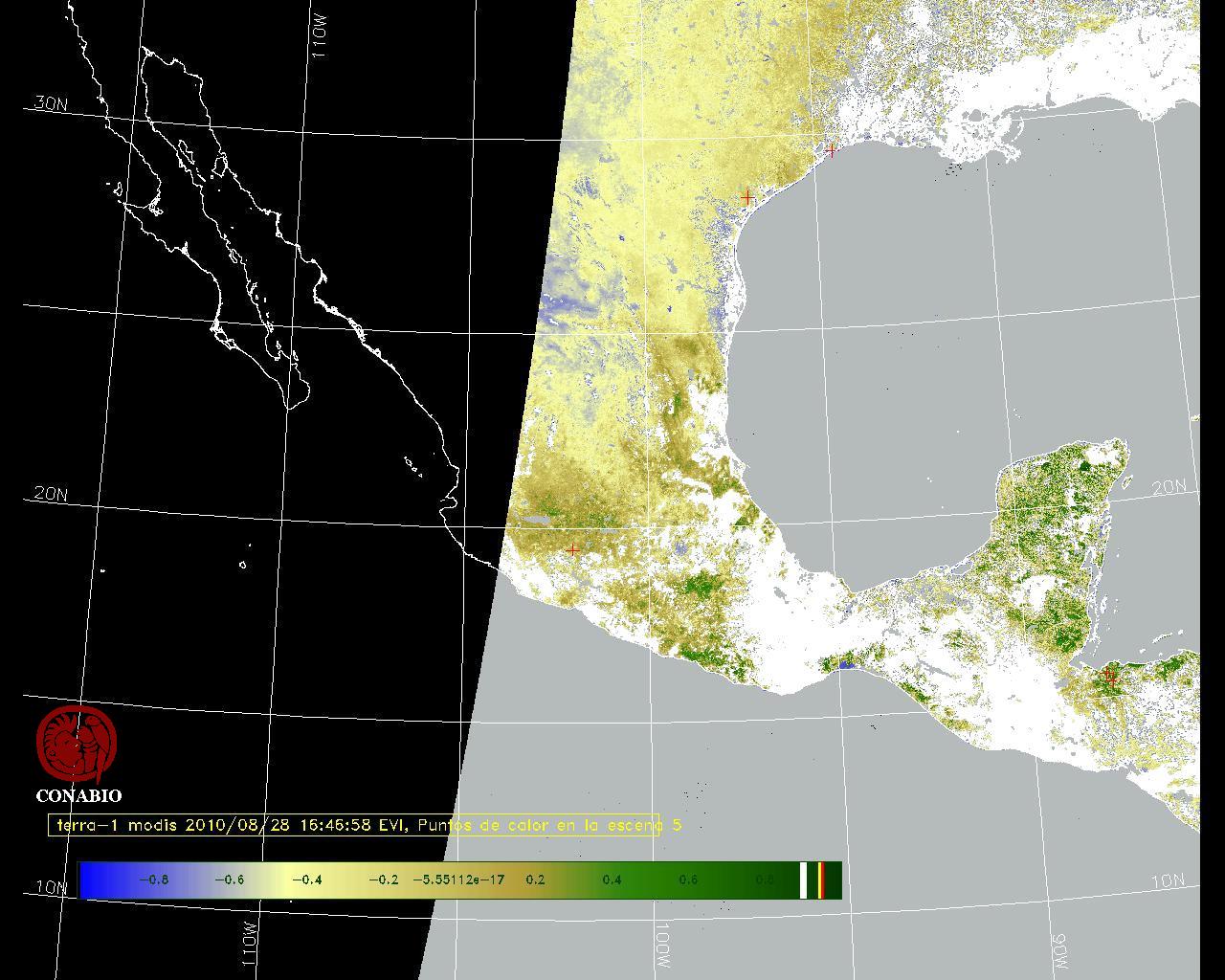 Se considera como punto de calor al elemento espacial mínimo de la imagen (pixel) que reporta una temperatura elevada. Para las imágenes diurnas la temperatura mínima considera es de 42 C y para las imágenes nocturnas es de 25 C. |