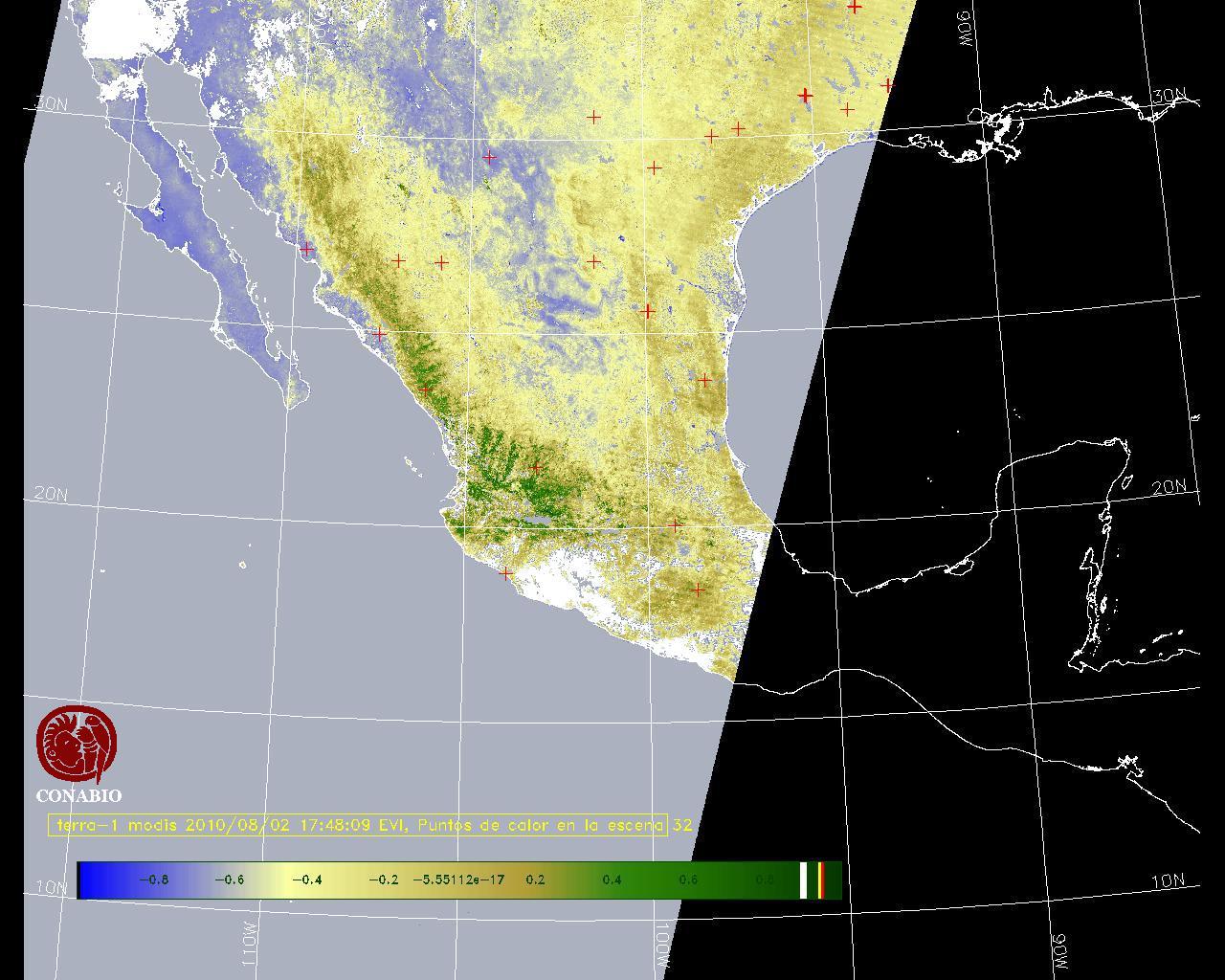 Se considera como punto de calor al elemento espacial mínimo de la imagen (pixel) que reporta una temperatura elevada. Para las imágenes diurnas la temperatura mínima considera es de 42 C y para las imágenes nocturnas es de 25 C. |