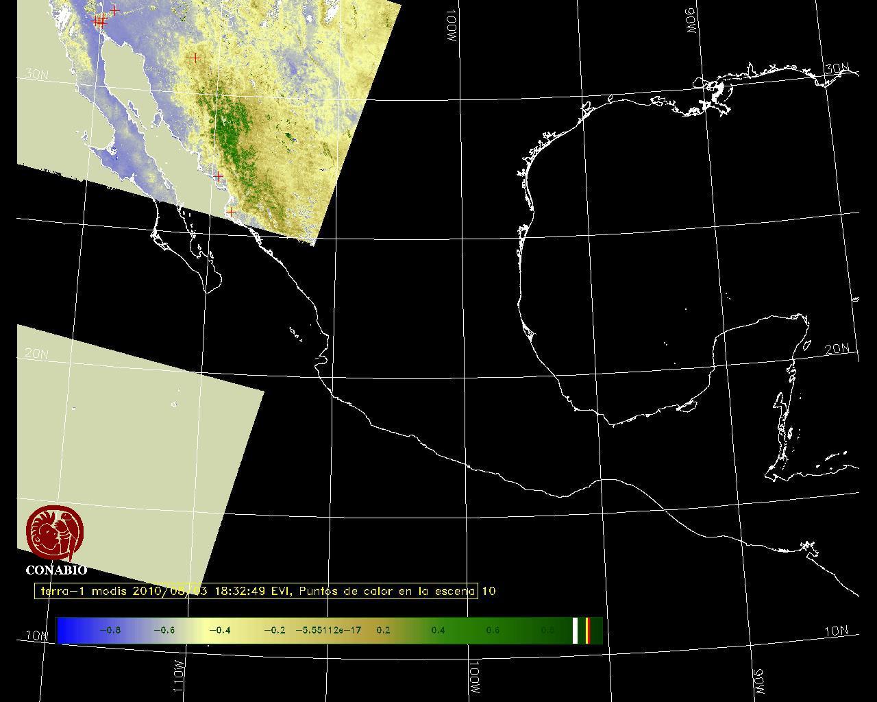 Se considera como punto de calor al elemento espacial mínimo de la imagen (pixel) que reporta una temperatura elevada. Para las imágenes diurnas la temperatura mínima considera es de 42 C y para las imágenes nocturnas es de 25 C. |
