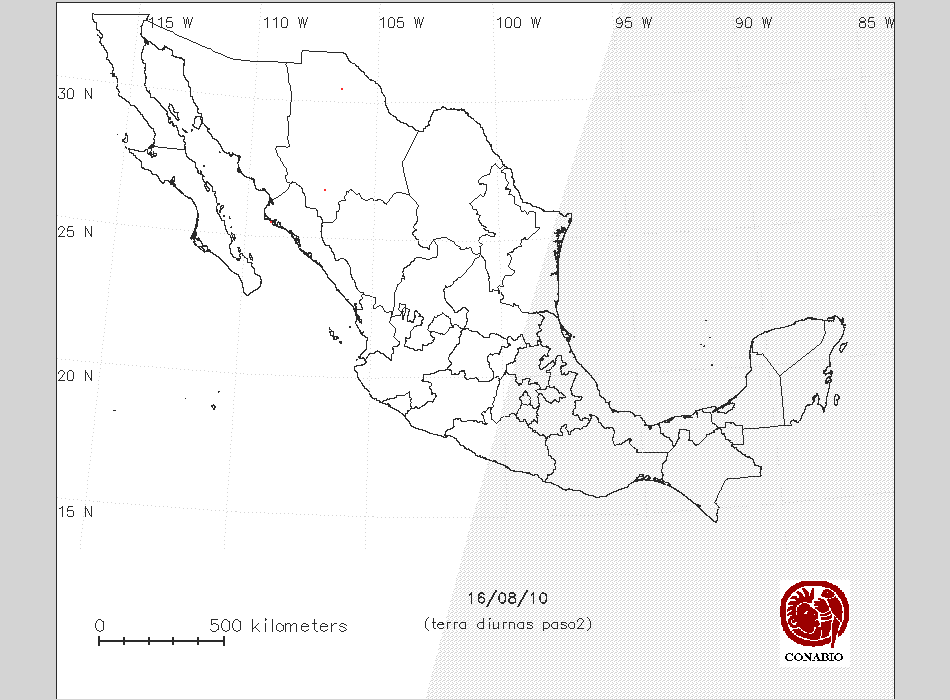 Se considera como punto de calor al elemento espacial mínimo de la imagen (pixel) que reporta una temperatura elevada. Para las imágenes diurnas la temperatura mínima considera es de 42 C y para las imágenes nocturnas es de 25 C. |