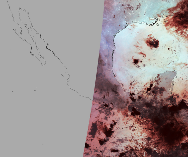 Nubosidad en el terreno:14% Nubosidad sobre México:5% Datos nulos en la escena:50% Datos nulos sobre México:63% |