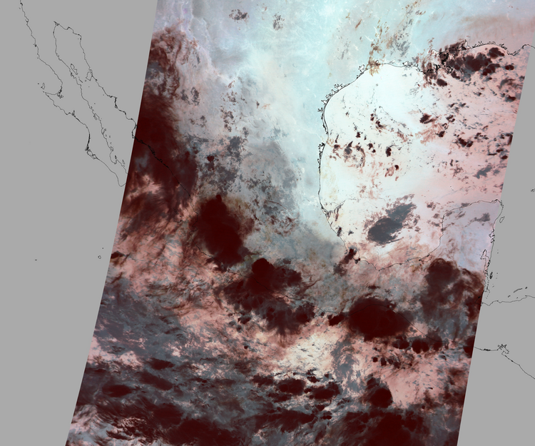 Nubosidad en el terreno:26% Nubosidad sobre México:36% Datos nulos en la escena:28% Datos nulos sobre México:16% |