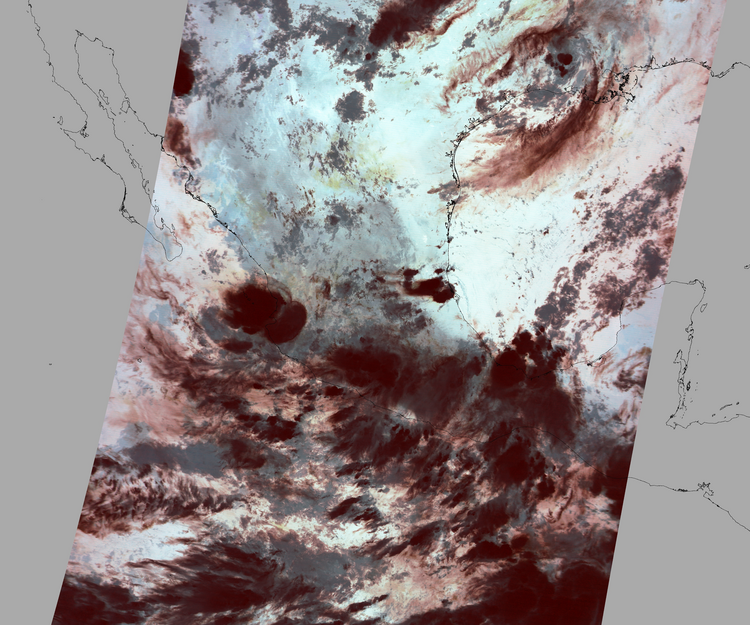Nubosidad en el terreno:28% Nubosidad sobre México:34% Datos nulos en la escena:28% Datos nulos sobre México:15% |