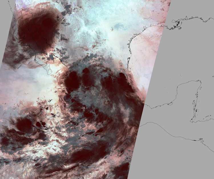 Nubosidad en el terreno:37% Nubosidad sobre México:55% Datos nulos en la escena:32% Datos nulos sobre México:15% |
