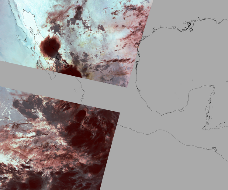 Nubosidad sobre el terreno:11% Nubosidad sobre México:14% Datos nulos en la escena:44% Datos nulos sobre México:29% |