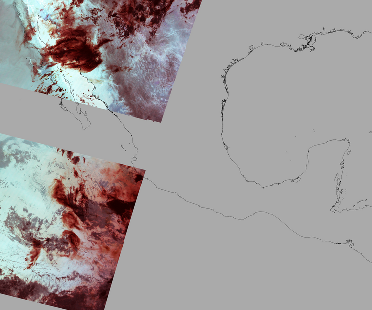 Nubosidad sobre el terreno:10% Nubosidad sobre México:9% Datos nulos en la escena:59% Datos nulos sobre México:54% |