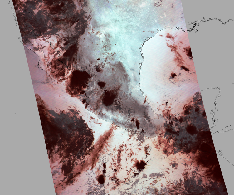 Nubosidad en el terreno:21% Nubosidad sobre México:22% Datos nulos en la escena:28% Datos nulos sobre México:4% |