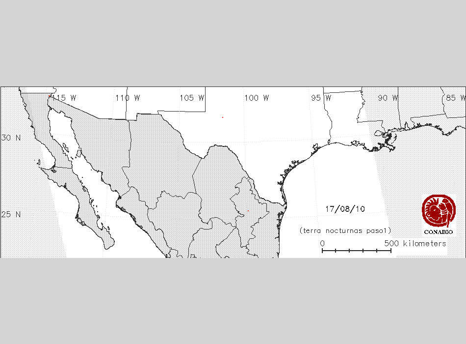 Se considera como punto de calor al elemento espacial mínimo de la imagen (pixel) que reporta una temperatura elevada. Para las imágenes diurnas la temperatura mínima considera es de 42 C y para las imágenes nocturnas es de 25 C. |