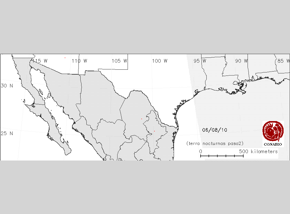 Se considera como punto de calor al elemento espacial mínimo de la imagen (pixel) que reporta una temperatura elevada. Para las imágenes diurnas la temperatura mínima considera es de 42 C y para las imágenes nocturnas es de 25 C. |