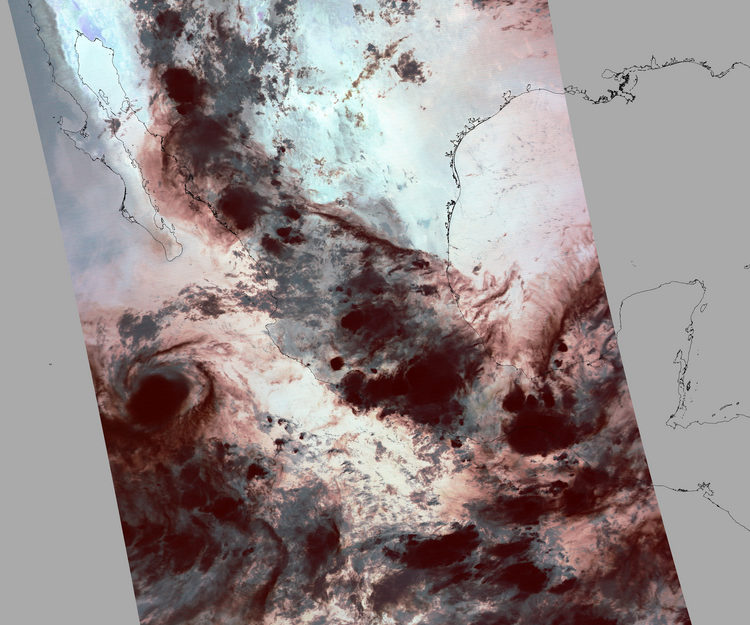 Nubosidad en el terreno:34% Nubosidad sobre México:44% Datos nulos en la escena:28% Datos nulos sobre México:6% |
