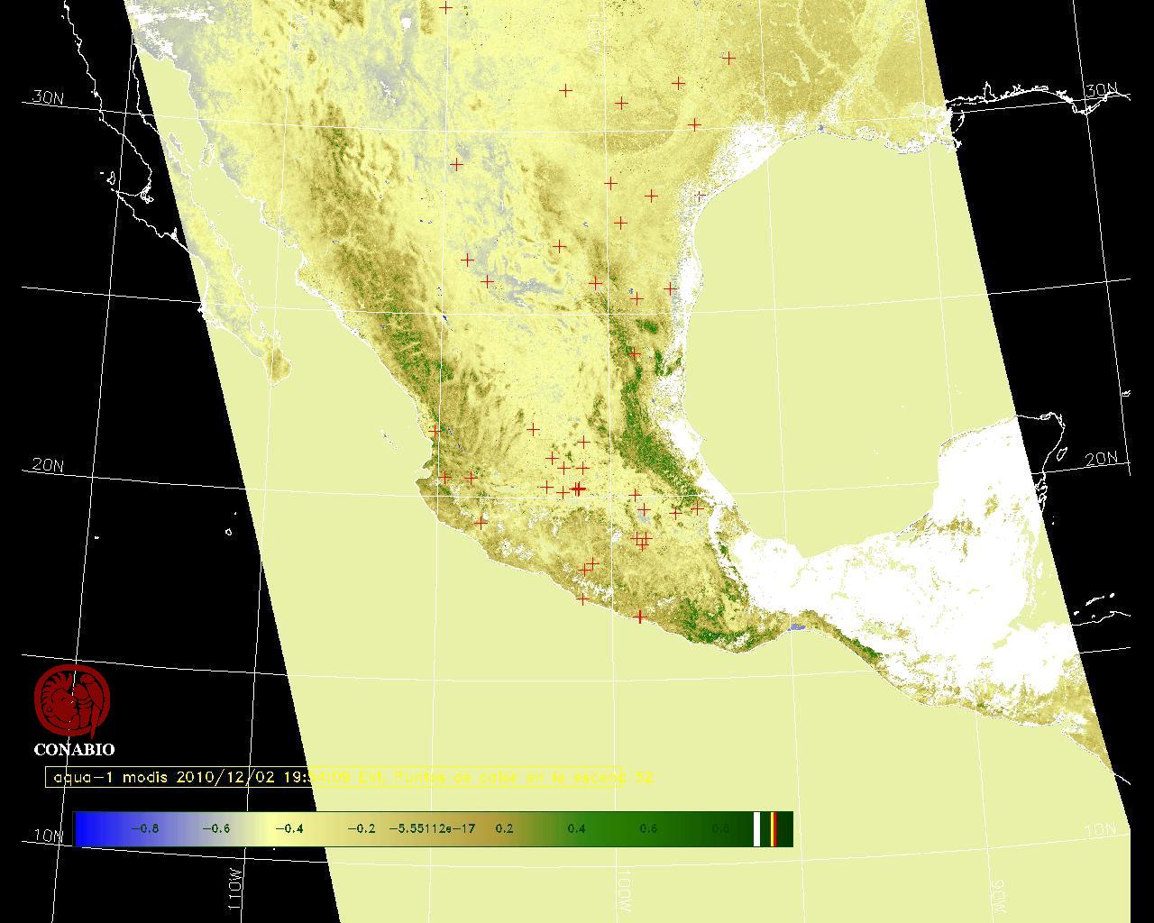 Se considera como punto de calor al elemento espacial mínimo de la imagen (pixel) que reporta una temperatura elevada. Para las imágenes diurnas la temperatura mínima considera es de 42 C y para las imágenes nocturnas es de 25 C. |