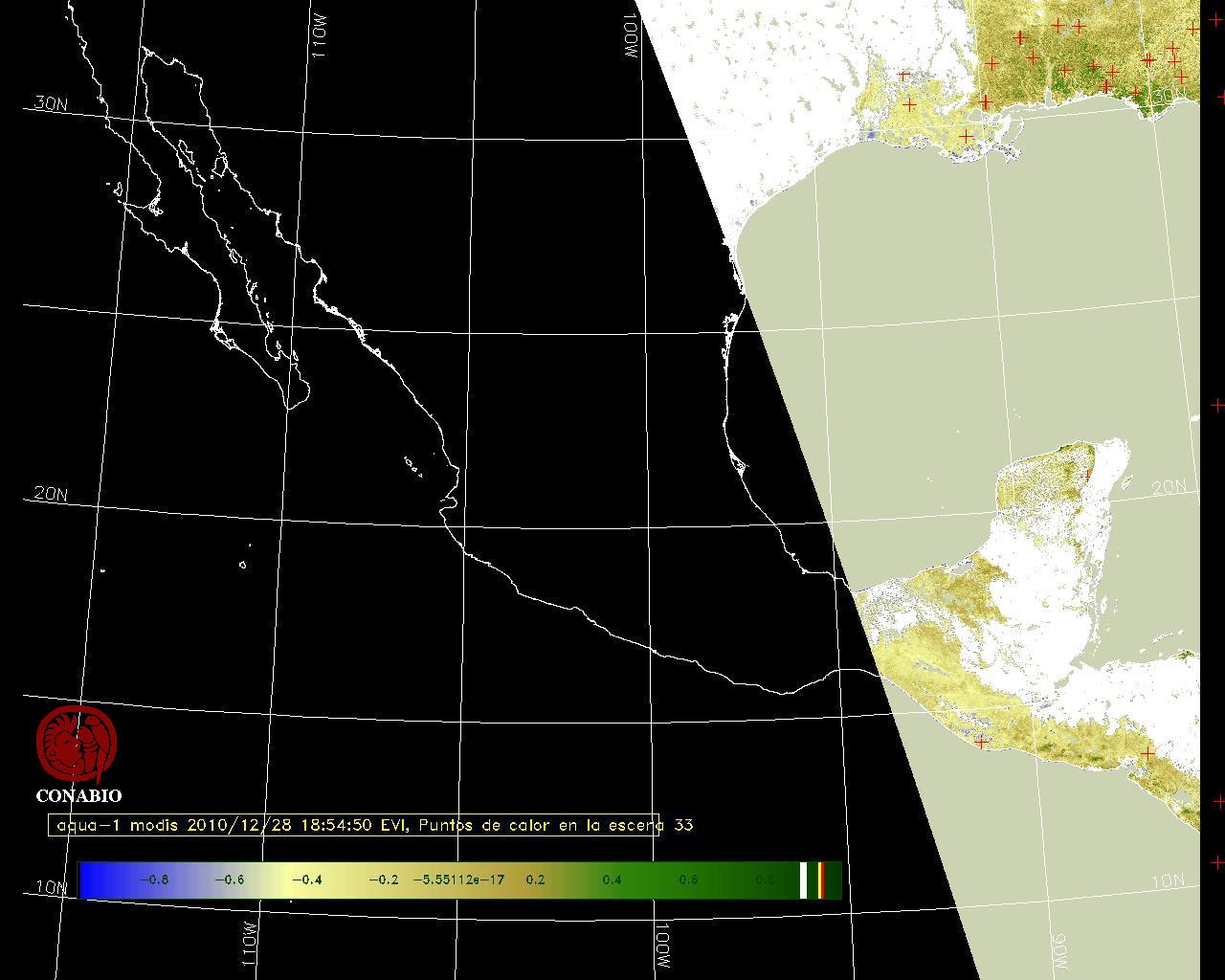 Se considera como punto de calor al elemento espacial mínimo de la imagen (pixel) que reporta una temperatura elevada. Para las imágenes diurnas la temperatura mínima considera es de 42 C y para las imágenes nocturnas es de 25 C. |