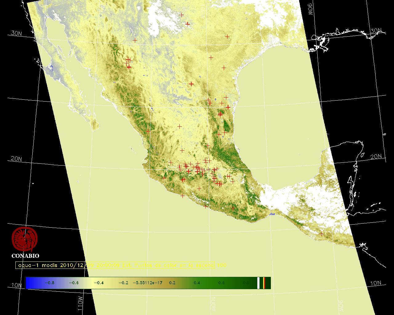 Los valores del índice van de -1 a 1, entre más cercano al valor 1 la vegetación presenta mayor vigor. Los índices de vegetación son utilizados para conocer el comportamiento de la vegetación tanto espacial como temporal. |