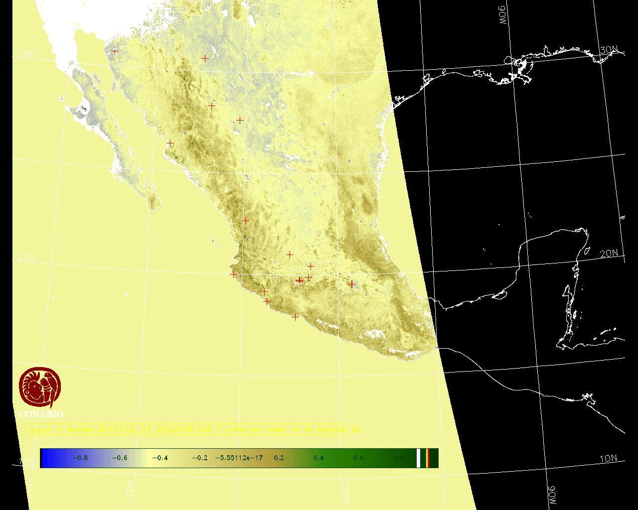 Se considera como punto de calor al elemento espacial mínimo de la imagen (pixel) que reporta una temperatura elevada. Para las imágenes diurnas la temperatura mínima considera es de 42 C y para las imágenes nocturnas es de 25 C. |