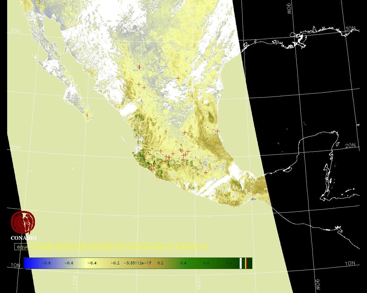 Los valores del índice van de -1 a 1, entre más cercano al valor 1 la vegetación presenta mayor vigor. Los índices de vegetación son utilizados para conocer el comportamiento de la vegetación tanto espacial como temporal. |