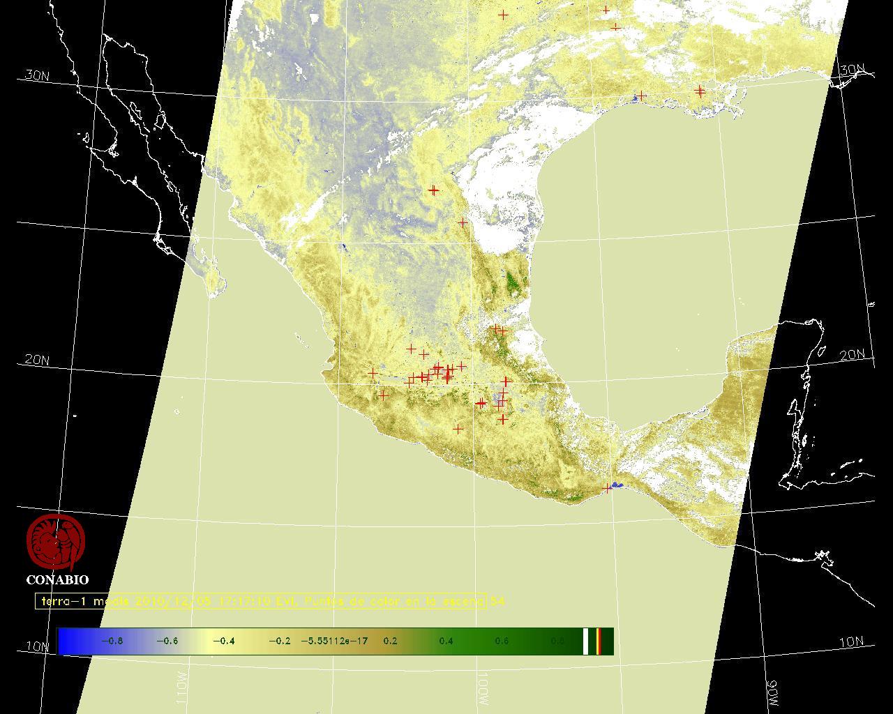 Se considera como punto de calor al elemento espacial mínimo de la imagen (pixel) que reporta una temperatura elevada. Para las imágenes diurnas la temperatura mínima considera es de 42 C y para las imágenes nocturnas es de 25 C. |