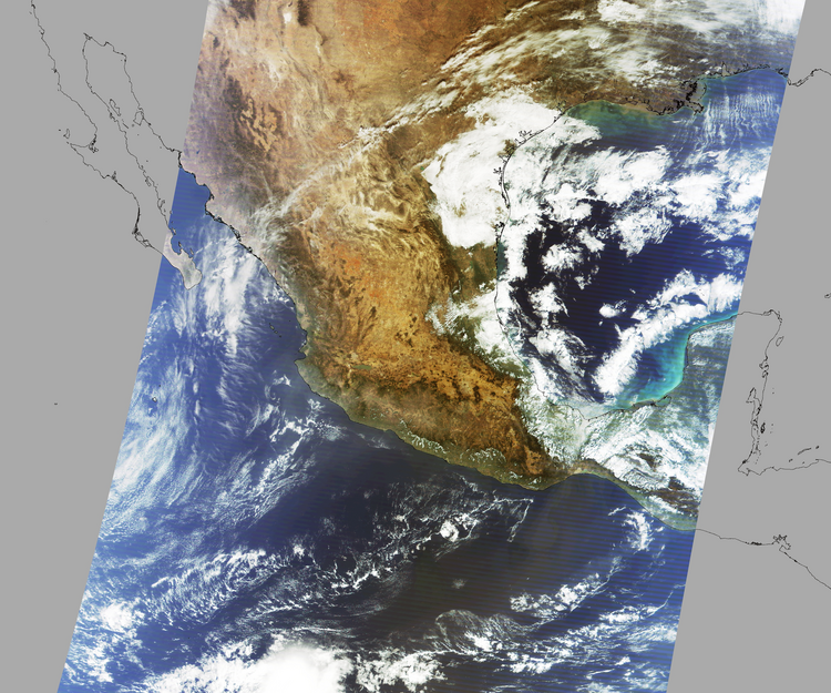 Nubosidad en el terreno:14% Nubosidad sobre México:7% Datos nulos en la escena:28% Datos nulos sobre México:15% |