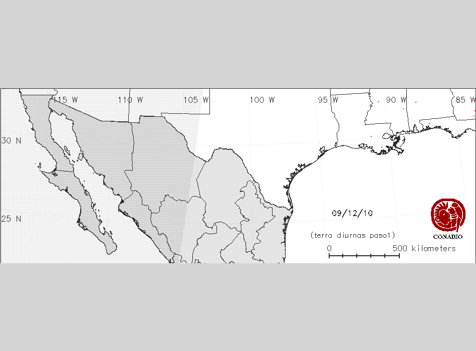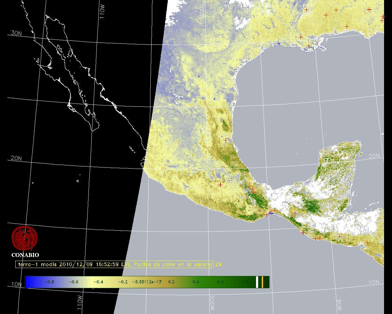 Se considera como punto de calor al elemento espacial mínimo de la imagen (pixel) que reporta una temperatura elevada. Para las imágenes diurnas la temperatura mínima considera es de 42 C y para las imágenes nocturnas es de 25 C. |
