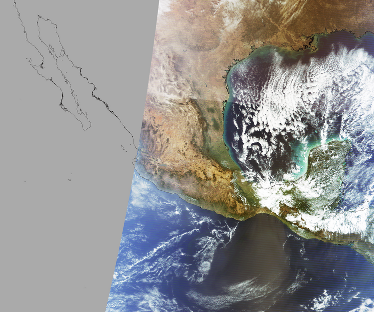 Nubosidad en el terreno:9% Nubosidad sobre México:7% Datos nulos en la escena:36% Datos nulos sobre México:35% |