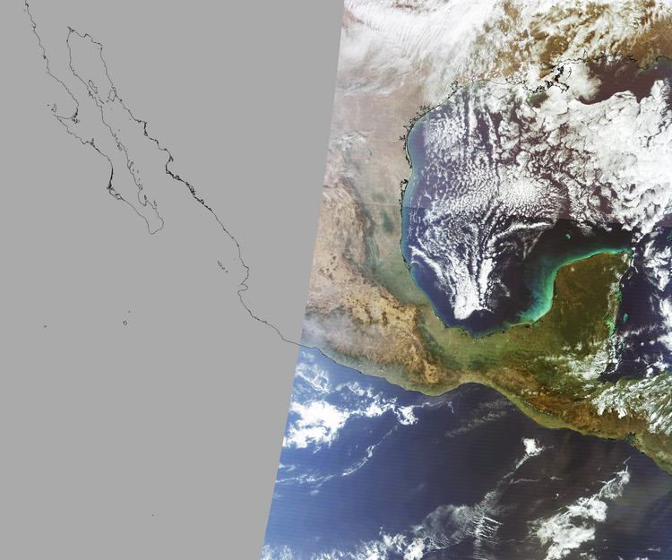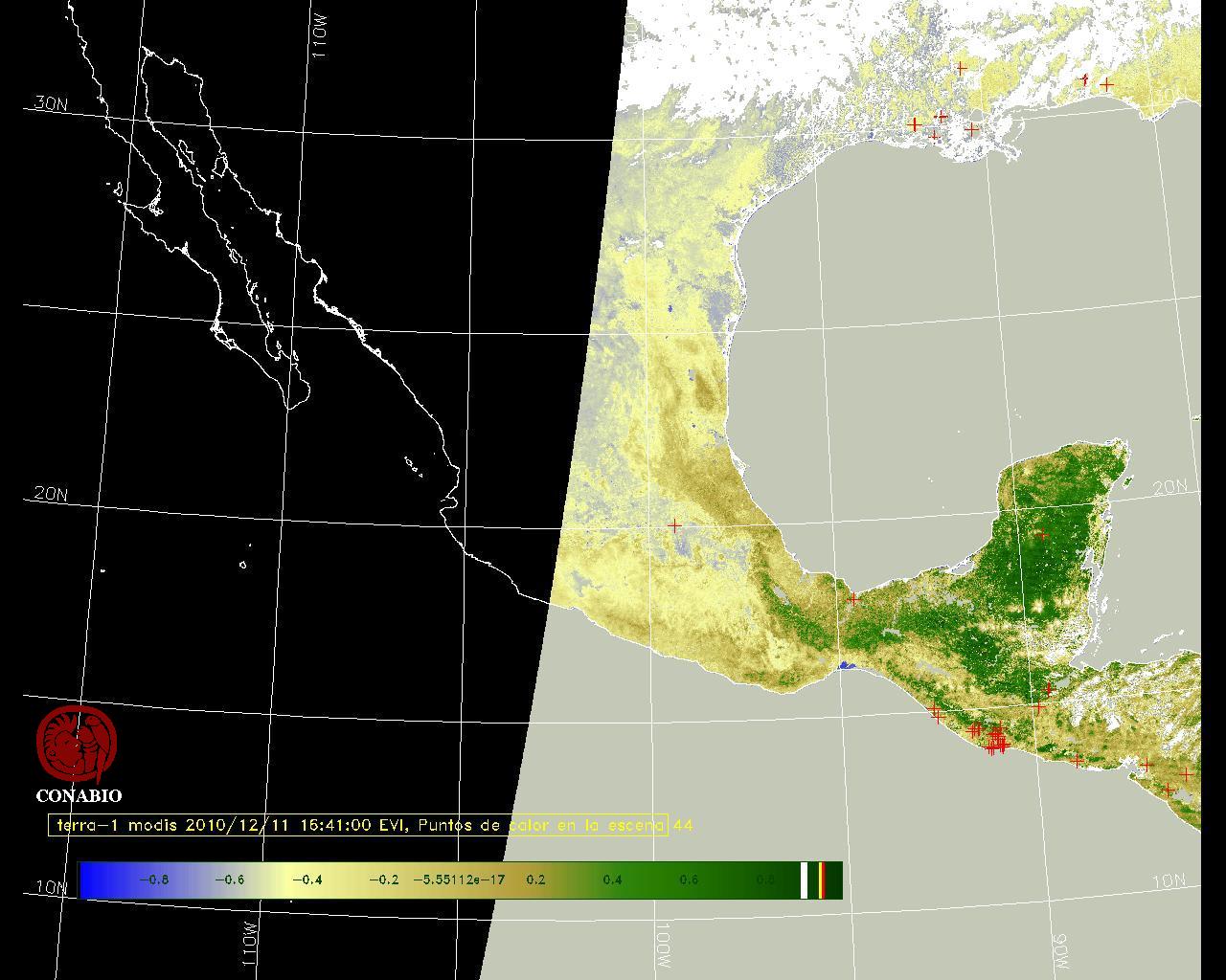 Nubosidad en el terreno:18% Nubosidad sobre México:0% Datos nulos en la escena:45% Datos nulos sobre México:53% |