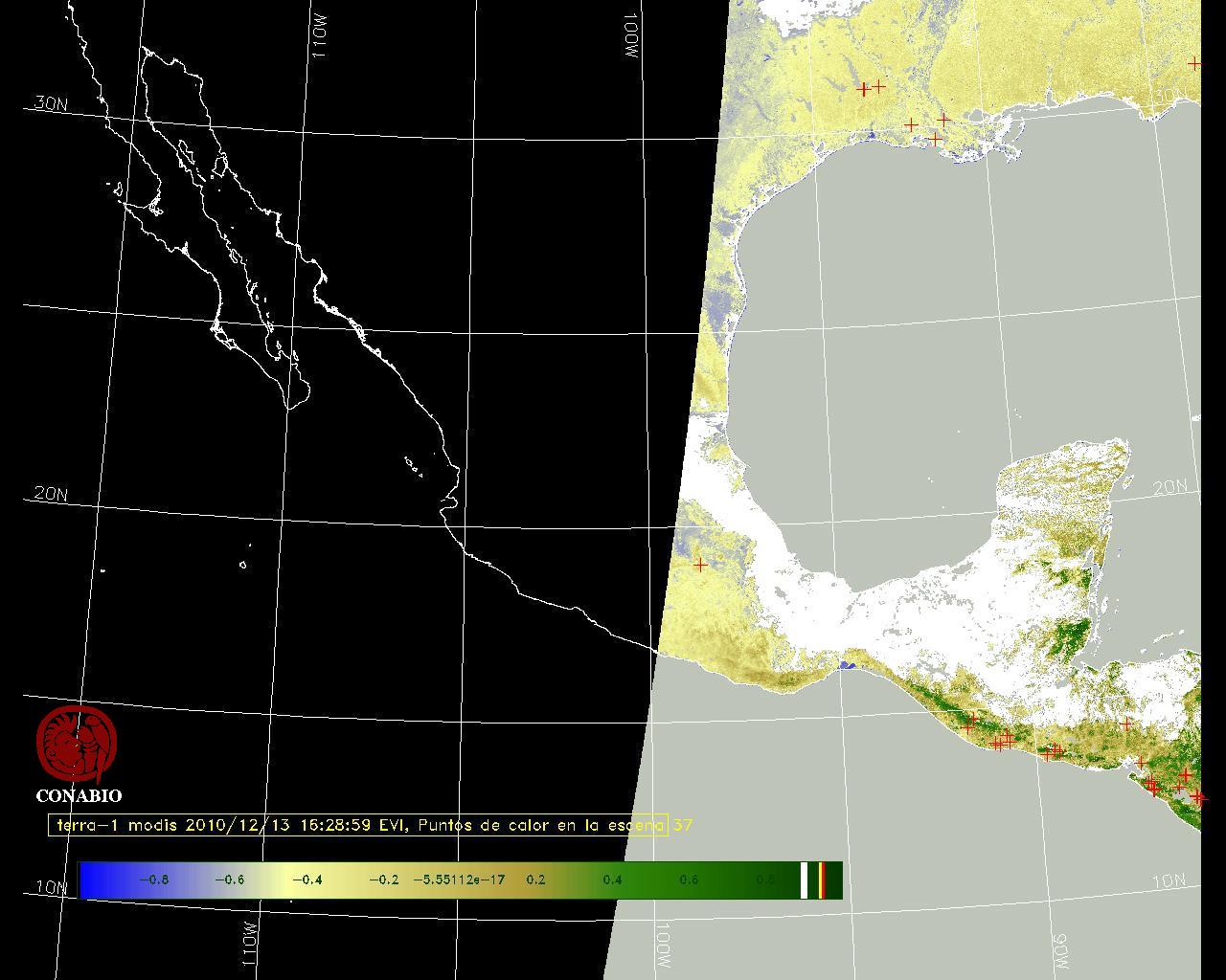 Se considera como punto de calor al elemento espacial mínimo de la imagen (pixel) que reporta una temperatura elevada. Para las imágenes diurnas la temperatura mínima considera es de 42 C y para las imágenes nocturnas es de 25 C. |