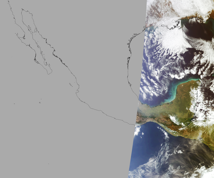 Nubosidad en el terreno:33% Nubosidad sobre México:6% Datos nulos en la escena:64% Datos nulos sobre México:83% |