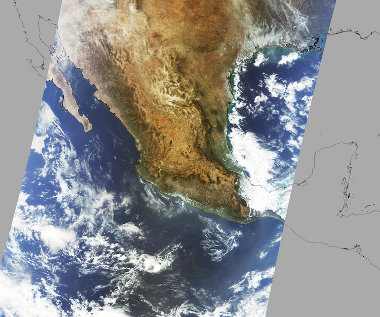 Nubosidad en el terreno:8% Nubosidad sobre México:7% Datos nulos en la escena:28% Datos nulos sobre México:15% |