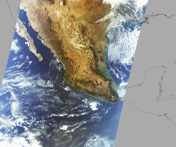 Nubosidad en el terreno:3% Nubosidad sobre México:0% Datos nulos en la escena:29% Datos nulos sobre México:15% |