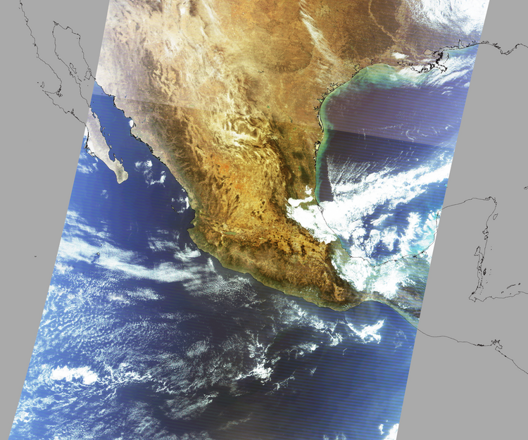 Nubosidad en el terreno:5% Nubosidad sobre México:4% Datos nulos en la escena:28% Datos nulos sobre México:14% |
