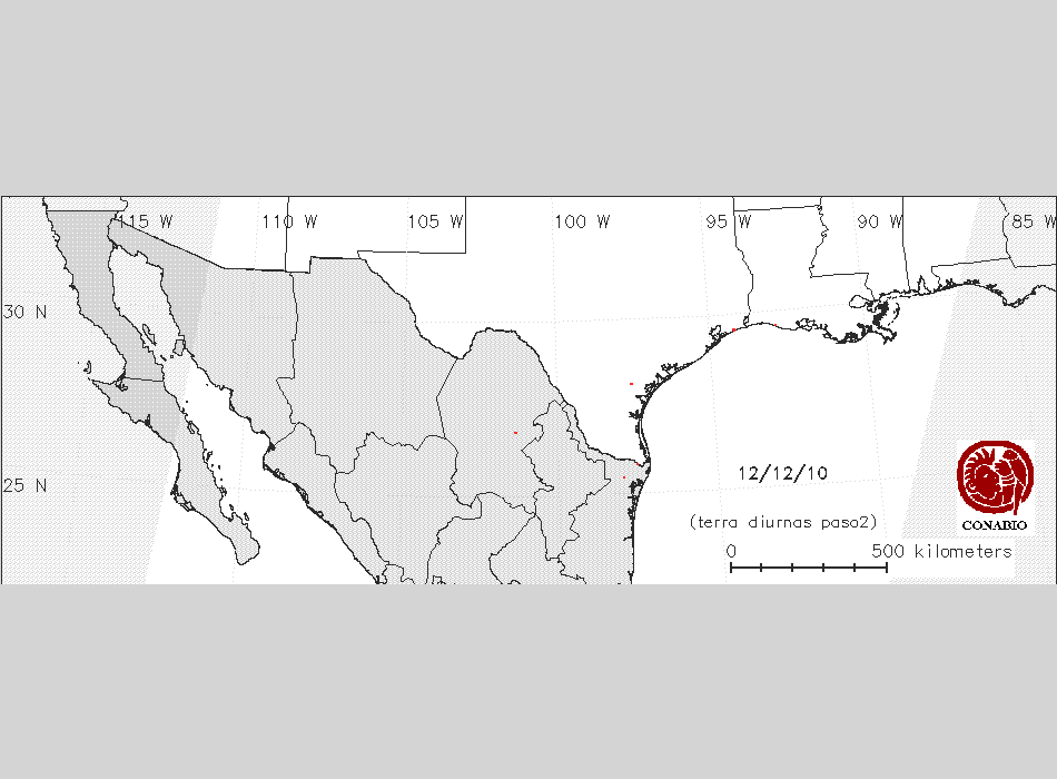Se considera como punto de calor al elemento espacial mínimo de la imagen (pixel) que reporta una temperatura elevada. Para las imágenes diurnas la temperatura mínima considera es de 42 C y para las imágenes nocturnas es de 25 C. |