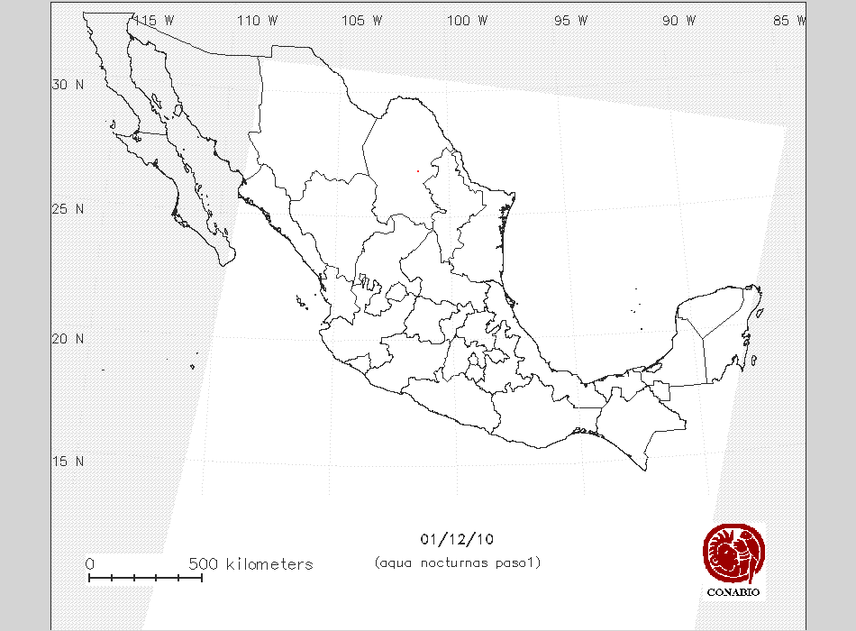 Se considera como punto de calor al elemento espacial mínimo de la imagen (pixel) que reporta una temperatura elevada. Para las imágenes diurnas la temperatura mínima considera es de 42 C y para las imágenes nocturnas es de 25 C. |