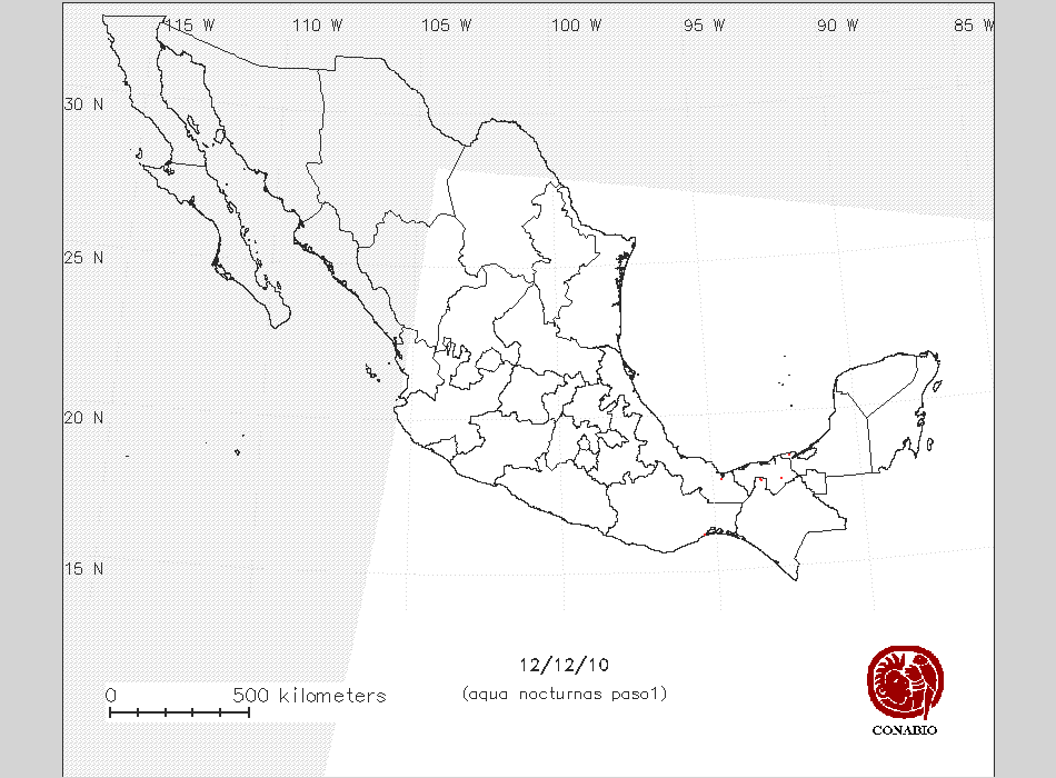Se considera como punto de calor al elemento espacial mínimo de la imagen (pixel) que reporta una temperatura elevada. Para las imágenes diurnas la temperatura mínima considera es de 42 C y para las imágenes nocturnas es de 25 C. |