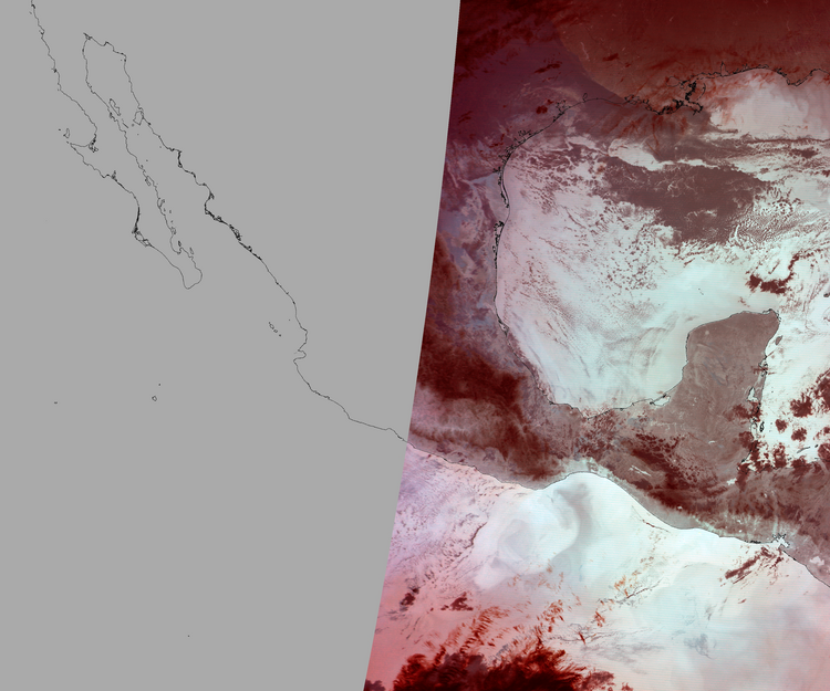 Nubosidad en el terreno:1% Nubosidad sobre México:0% Datos nulos en la escena:50% Datos nulos sobre México:63% |