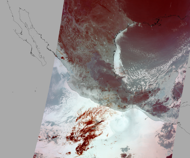 Nubosidad en el terreno:13% Nubosidad sobre México:0% Datos nulos en la escena:29% Datos nulos sobre México:22% |
