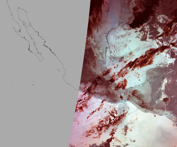 Nubosidad en el terreno:13% Nubosidad sobre México:4% Datos nulos en la escena:45% Datos nulos sobre México:53% |